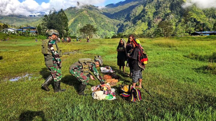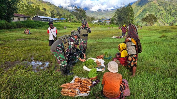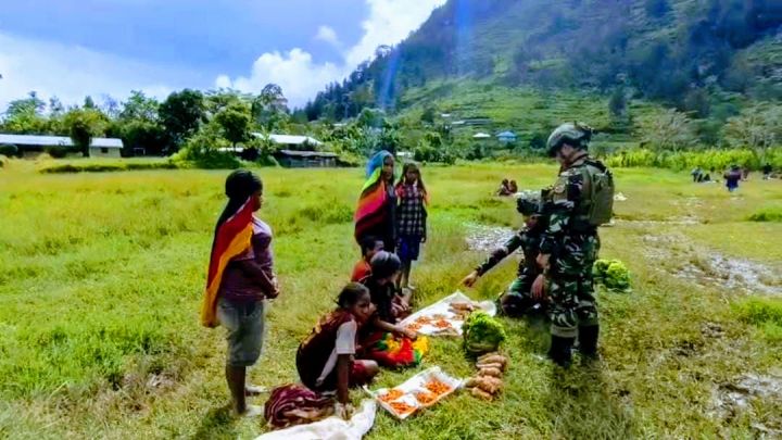 AKSI HUMANIS PRAJURIT TNI AL BORONG HASIL BUMI MASYARAKAT DI PEDALAMAN PAPUA