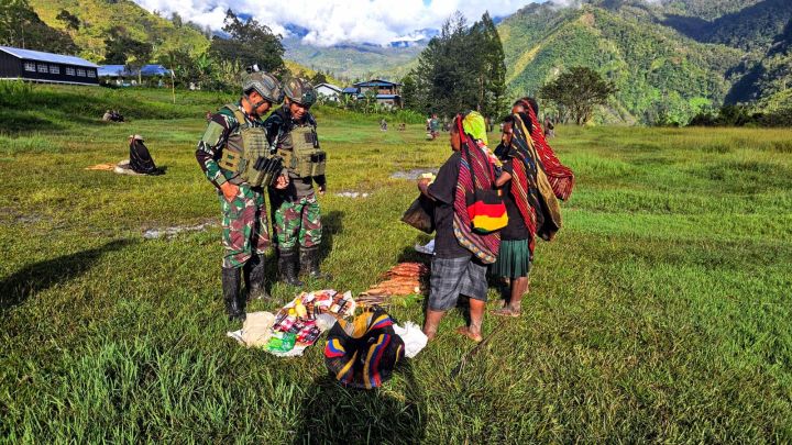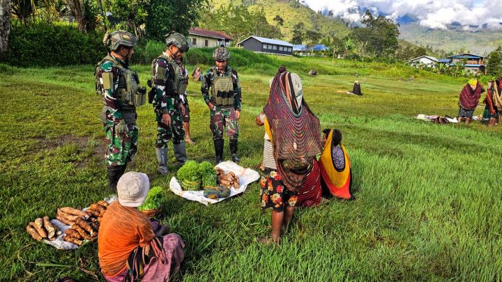 –TNI AL Sebagai garda terdepan tidak hanya dalam aspek pertahanan wilayah perairan negara tetapi juga hadir dalam menjamin kesejahteraan rakyat. Hal ini tampak nyata dalam kegiatan Satgas Pamtas RI–PNG Mobile Yonif 1 Marinir yang menggelar aksi “ROSITA” (Borong Hasil Tani) berlangsung di Kampung Kokamu, Kabupaten Yahukimo, Papua. Sabtu (10/5).