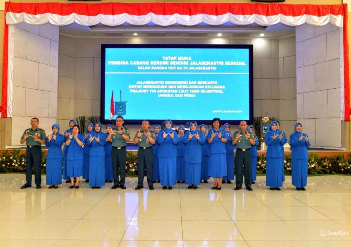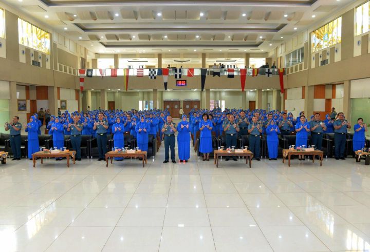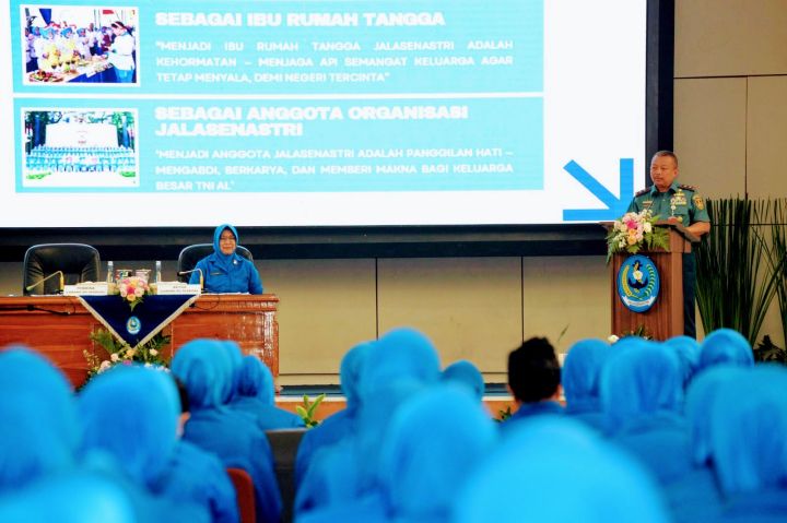 Komandan Sekolah Staf dan Komando Angkatan Laut (Danseskoal) Laksamana Muda TNI Ariantyo Condrowibowo selaku Pembina Cabang Berdiri Sendiri Jalasenastri Seskoal didampingi Ketua Cabang Berdiri Sendiri Jalasenastri Seskoal Ny. Dian Ariantyo Condrowibowo memberikan pengarahan secara langsung kepada anggota Cabang Berdiri Sendiri Jalasenastri Seskoal dan para istri Perwira Siswa (Pasis) Dikreg Seskoal angkatan ke-64 TA 2025 dalam acara tatap muka, bertempat di auditorium Jos Soedarso Seskoal, Cipulir, Kebayoran Lama, Jakarta Selatan.