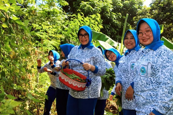 Upaya konkret Cabang Berdiri Sendiri (CBS) Jalasenastri Seskoal dalam memastikan ketersediaan pangan, Ketua beserta Pengurus Cabang Berdiri Sendiri (CBS) Jalasenastri Seskoal melaksanakan panen sayuran di kebun ketahanan pangan yang berada di kawasan Komplek Seskoal, Cipulir, Kebayoran Lama, Jakarta Selatan, Kamis (24/4/2025).