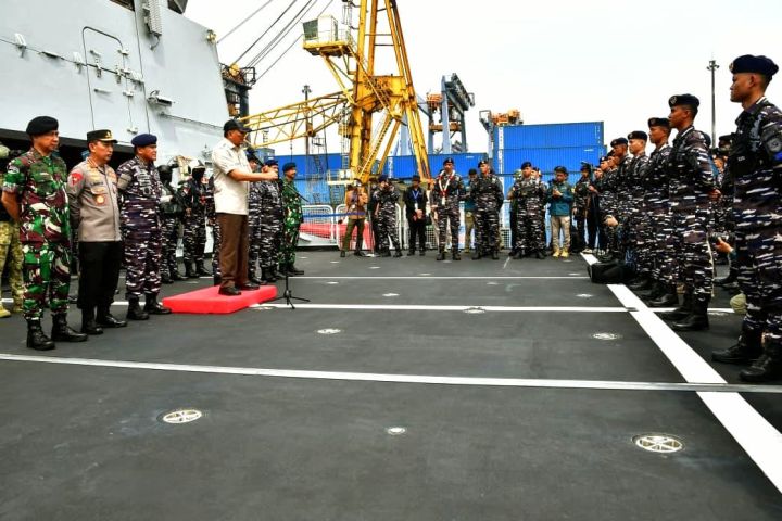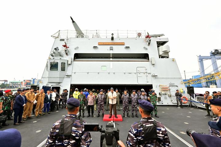 – Kapal Perang jenis Frigate terbesar se-Asia Tenggara milik TNI AL yakni KRI Brawijaya-320 (KRI BWJ-320) tiba di Pelabuhan JICT 107 Tanjung Priok, Jakarta Utara pada Senin (8/9). Kedatangan KRI BWJ-320 ini disambut oleh Menteri Pertahanan Republik Indonesia (Menhan RI) Jenderal TNI (Purn) Sjafrie Sjamsoeddin didampingi Panglima TNI Jenderal TNI Agus Subiyanto, Kepala Staf Angkatan Laut (Kasal) Laksamana TNI Dr. Muhammad Ali, serta Kapolri Jenderal Pol Listyo Sigit Prabowo.