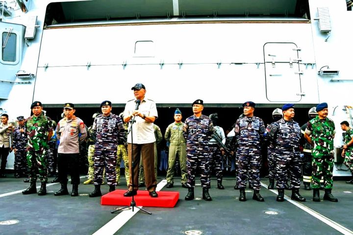 Lebih lanjut Menhan RI berpesan agar Panglima TN dan para Kepala Staf Angkatan, terus memelihara kesiapan dan keterampilan seluruh perangkat KRI Brawijaya-320 dalam menghadapi ancaman dari dalam dan luar. “Kita dihadapkan pada tantangan selain untuk memelihara NKRI, kita juga dihadapkan dengan tantangan untuk menertibkan dan mengamankan sumber daya alam yang dimiliki oleh negara dan dimanfaatkan untuk memenuhi kebutuhan rakyat Indonesia,” tandas Menhan RI.