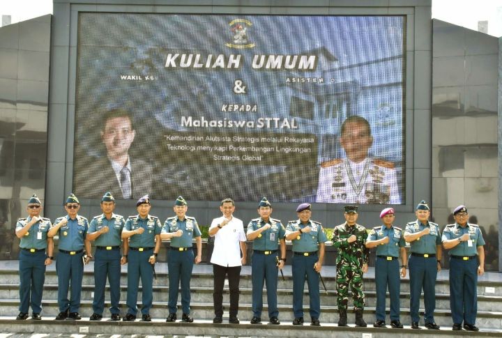 Kepala Pusat Pengkajian Maritim (Kapusjianmar) Sekolah Staf dan Komando Angkatan Laut (Seskoal) Laksamana Pertama TNI Salim, S.E., M.Phil., M.Tr.Opsla. menghadiri kuliah umum Asisten Operasi Kepala Staf Angkatan Laut (Asops Kasal) Laksamana Muda TNI Yayan Sofyan, S.T., M.Si., CHRMP., M.Tr.Opsla. kepada mahasiswa Sekolah Tinggi Teknologi Angkatan Laut (STTAL), dengan tema “STTAL sebagai Aset TNI AL dalam Pengembangan Naval Surveillance, Defence and Striking Strategy guna Mendukung Konsep Bertempur Matra Laut”, bertempat di gedung Marore Lt. 2 STTAL, Surabaya, Rabu (25 Maret 2026).