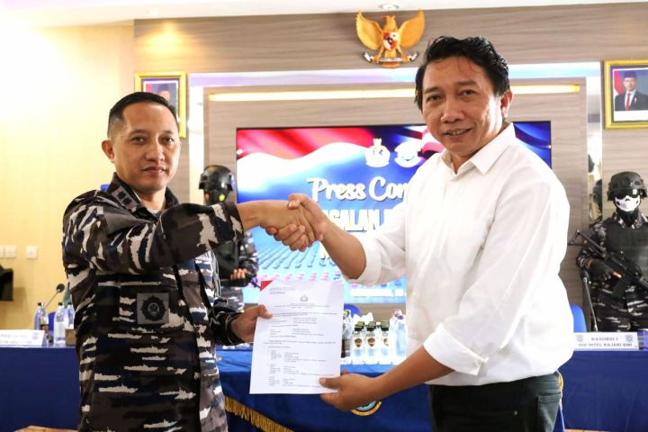 Komandan Lanal Banyuwangi Letkol Laut (P) Puji Santoso, M.Sc. di hadapan awak media pada konferensi pers yang digelar di Mako Lanal Banyuwangi, Senin (28/7) menyampaikan bahwa berdasarkan keterangan awal minuman keras tersebut akan didistribusikan ke beberapa wilayah di Pulau Jawa, antara lain Pekalongan, Karawang Timur, Cikoko, dan Bogor. Lebih lanjut, seluruh barang bukti beserta pelaku akan diserahkan kepada Bea Cukai Banyuwangi untuk proses lebih lanjut. “Lanal Banyuwangi turut berperan aktif dalam rangka mengamankan Banyuwangi, khususnya di laut,” pungkas Danlanal Banyuwangi.