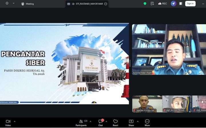 Perwira Siswa Pendidikan Reguler Sekolah Staf dan Komando Angkatan Laut (Pasis Dikreg Seskoal) angkatan ke-65 TA 2026 melaksanakan kegiatan proses belajar mengajar (PBM) online mata pelajaran Keamanan Siber, yang diberikan oleh Dosen SBS Operasi Militer Selain Perang (OMSP) Kolonel Marinir M. Ilham, M.Tr.Hanla., M.M., Rabu (25/03/2026).