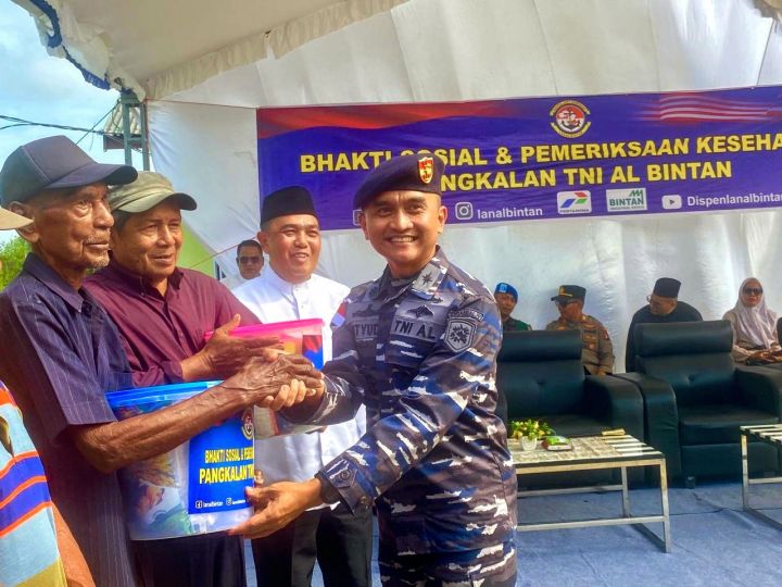 – TNI AL berkomitmen menunjukkan kepedulian kepada masyarakat di wilayah kerjanya. Kali ini, Pangkalan TNI AL (Lanal) Bintan menggelar bakti sosial (baksos) dengan membagikan 130 paket sembako dan memberikan layanan pemeriksaan kesehatan gratis kepada warga desa Busung, Kecamatan Seri Kuala Lobam, Kabupaten Bintan, Selasa (24/2).