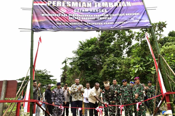 — TNI AL terus menunjukkan komitmennya dalam mendukung pembangunan wilayah serta memperkuat konektivitas di daerah pesisir dan kepulauan. Kali ini, Komandan Kodaeral X Mayjen TNI (Mar) Werijon, M.Han., meresmikan jembatan yang dibangun dalam rangka mendukung program strategis nasional Satgas Darurat Jembatan di Distrik Bonggo, Kabupaten Sarmi, Papua, pekan ini.