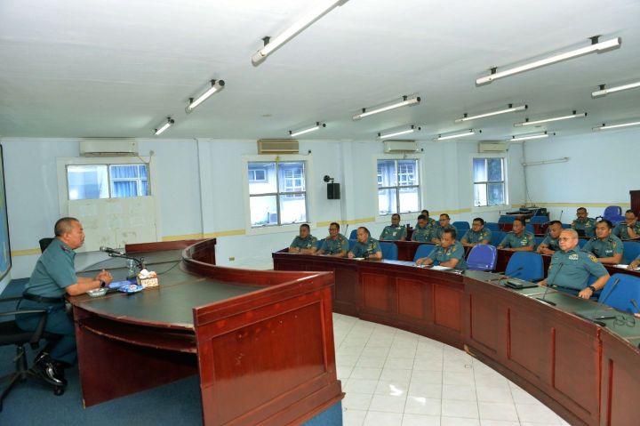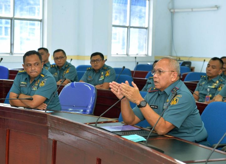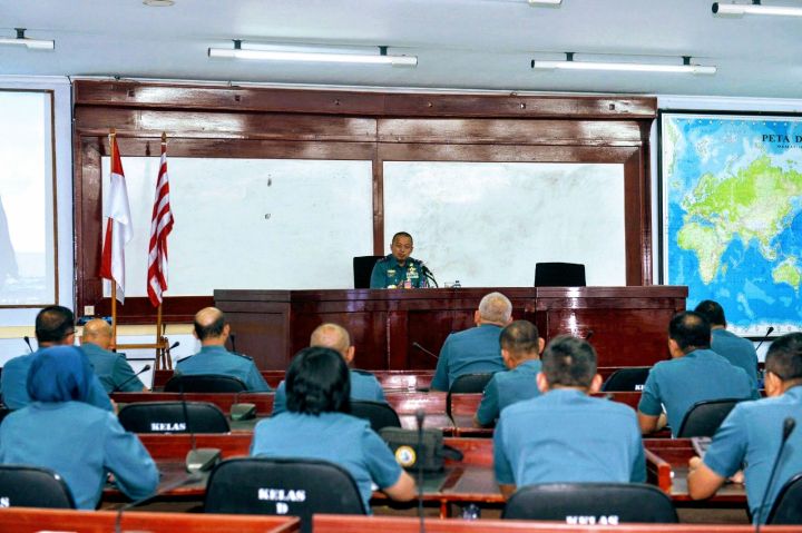Menindaklunjuti dinamika kurikulum pendidikan yang ada di lingkungan TNI AL, Komandan Sekolah Staf dan Komando Angkatan Laut (Danseskoal) Laksamana Muda TNI Ariantyo Condrowibowo memberikan pengarahan kepada segenap Pejabat Utama (PJU) Seskoal, Kepala Departemen (Kadep) serta Dosen Seskoal yang dilaksanakan di Kelas D Gedung OB Syaaf Seskoal, Cipulir, Kebayoran Lama, Jakarta Selatan, Kamis (3/7/2025).