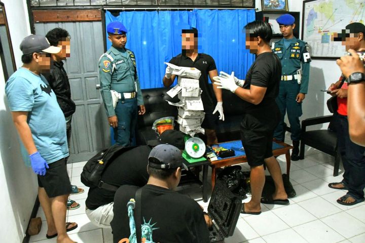 Adapun barang bukti yang diamankan berupa barang diduga narkoba jenis sabu-sabu yang dikemas dalam 11 bungkus teh Cina seberat 11,5 kg yang ditaksir senilai Rp 17.250.000.000, speedboat 40 PK berwarna jingga, 1 buah tas berwarna hitam, dan 1 buah power bank, serta dua terduga pelaku berinisial K (29) dan NA (25).